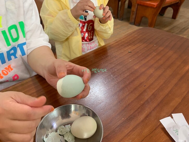 그리고 식사하기 전에 사람수에 맞게 삶은 계란을 줍니다. 청란이면서 유정란입니다. 청란 하고 유정란을 집에서 평소에 먹고 있는데 아주 비쌉니다. 이렇게 무료로 제공해주니 좋네요.