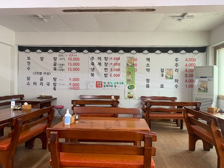 아래 메뉴판 참고하시기 바랍니다. 저희는 추어탕, 소머리국밥 그리고 7살 딸아이와 4살 아들이 같이 먹을 닭곰탕을 주문을 했습니다.