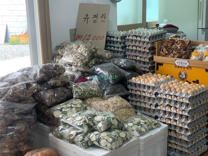 직접 농장을 운영하고 있어서 유정란, 청란 및 여러가지 좋은 식재료를 식당에서 판매하고 있습니다. 집에 유정란이 많아서 구매는 안 했습니다.
