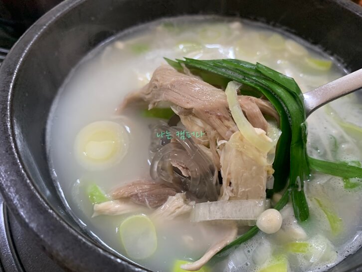 마지막으로 아이들이 먹은 닭곰탕입니다. 닭을 보니 토종닭으로 만드신것 같습니다. 애들이 좀 남겨서 제가 먹어봤는데 괜찮습니다.